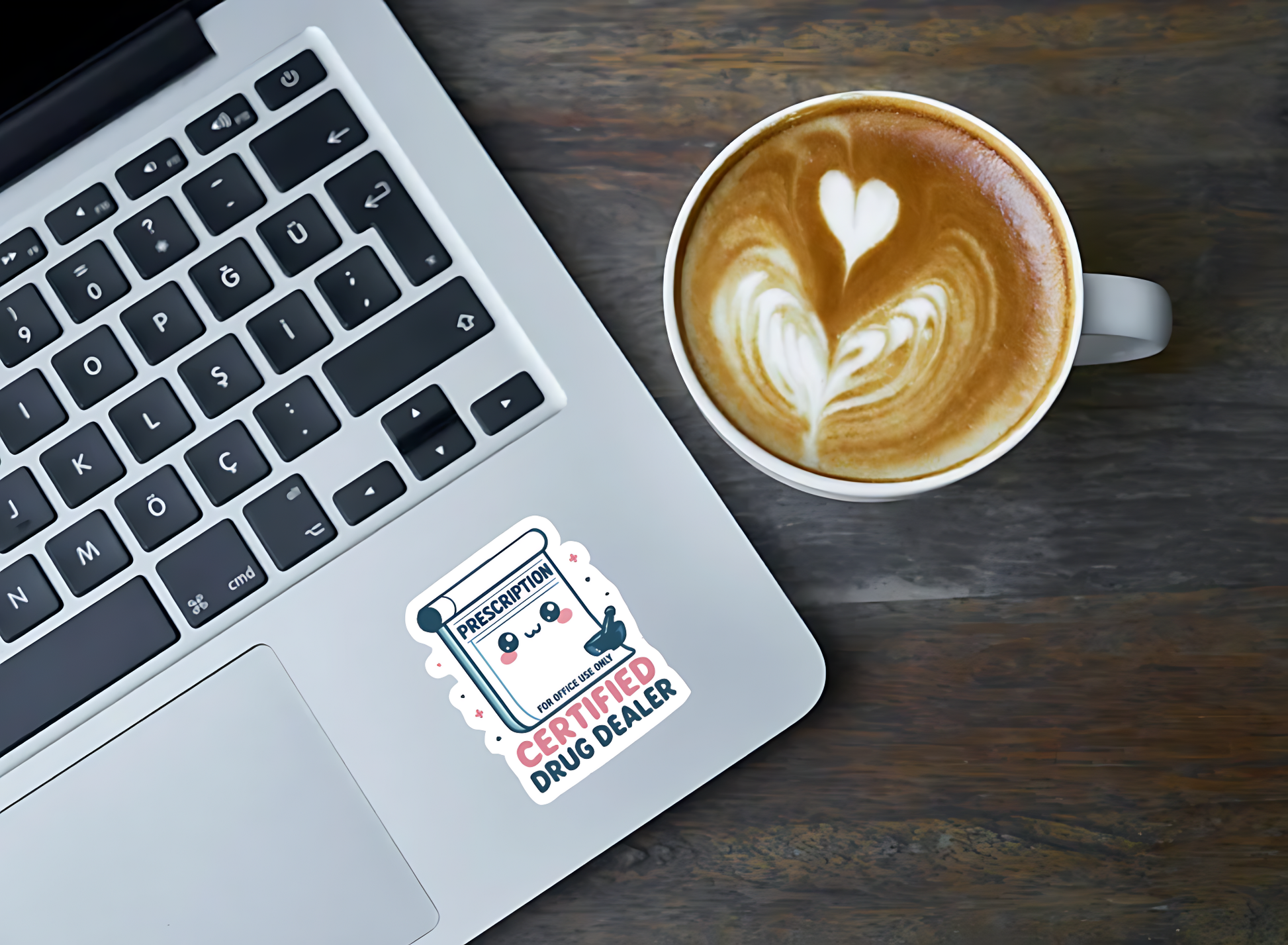 Show off your medical pride (with a dose of humor) with this Certified Drug Dealer Sticker! Featuring a cute prescription pad design with a playful face and bold lettering, this sticker is perfect for healthcare professionals, students, and anyone in the medical field who appreciates a little inside joke.